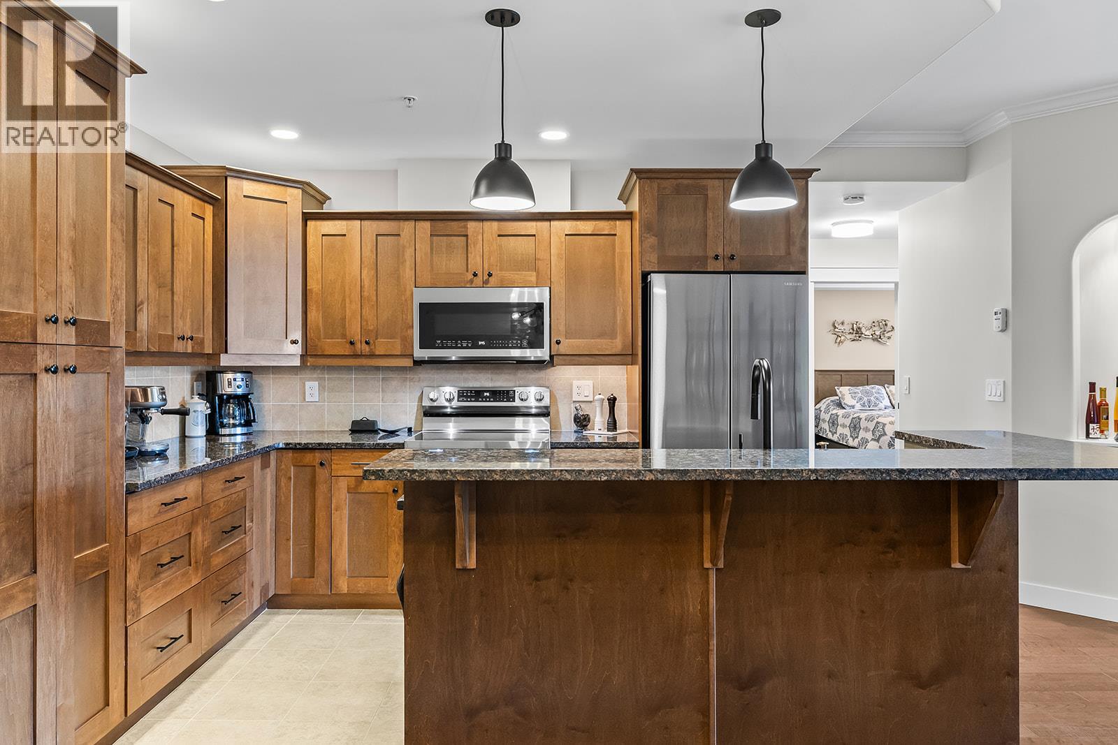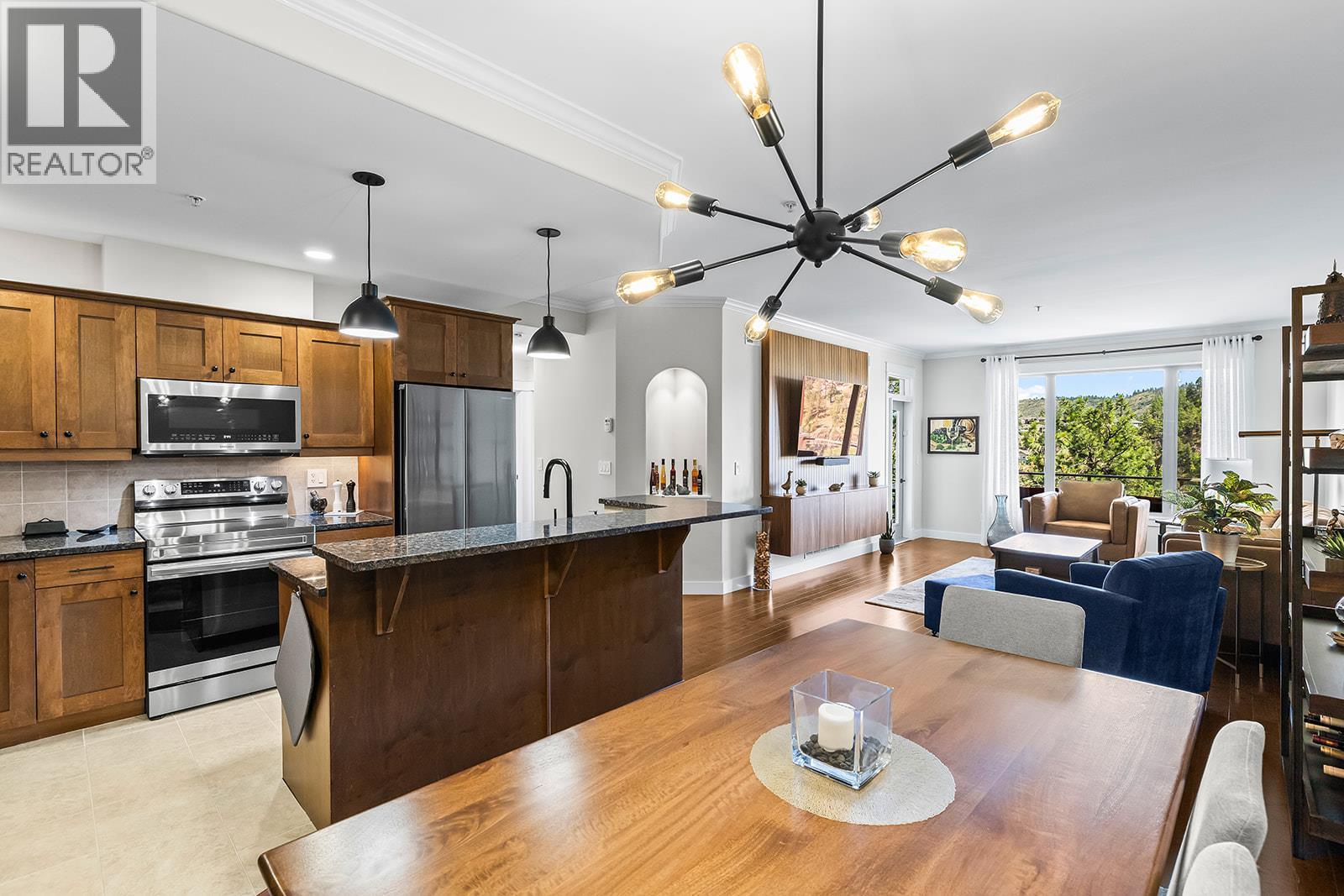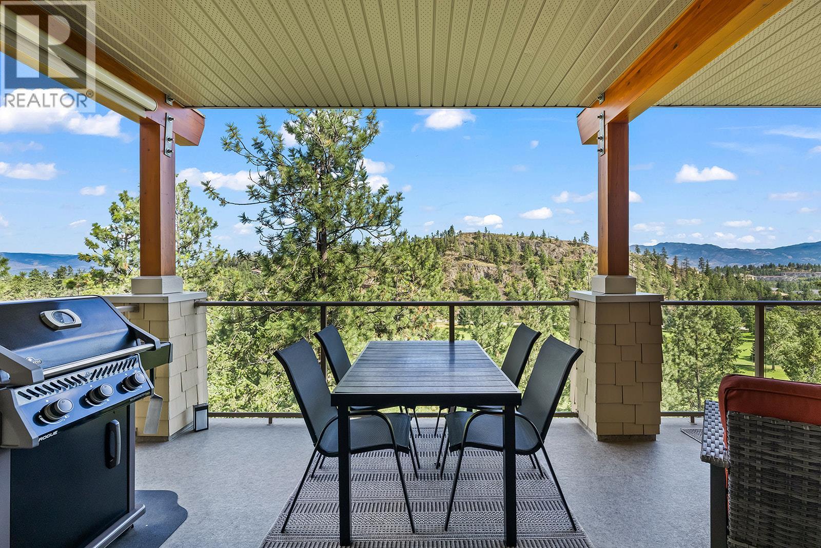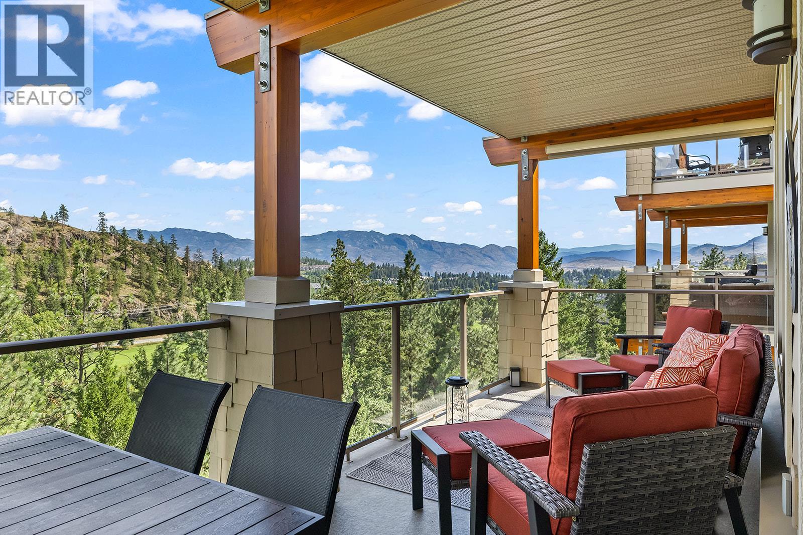 Welcome to this stylish 2 bedroom, 2 bathroom TURN-KEY condo offering breathtaking views that capture the best of the Okanagan lifestyle. Enjoy panoramic vistas on your expansive covered deck —from Shannon and Okanagan Lakes to the south, to the rolling greens of the surrounding golf course, and sparkling city lights to the north. Inside, high ceilings and large windows create a bright, airy feel, enhanced by tasteful furniture purchased in 2023 (yes, it can stay!) fresh paint, newer carpet, upgraded appliances, modern light and plumbing fixtures, custom window coverings, and a stunning built-in cabinet with a statement wall treatment. West Coast lodge-style architecture defines the exterior, with cedar beams and shaker-style siding, while Tuscan-inspired touches inside include granite countertops, basin sinks, crown mouldings, and a charming arched niche with recessed lighting. Located at Eagle Terrace next to Shannon Lake Golf Course, you’ll enjoy more than just great golf—dine out steps from home at Courses Restaurant and soak in the beauty and convenience of this unique location. (id:4069)