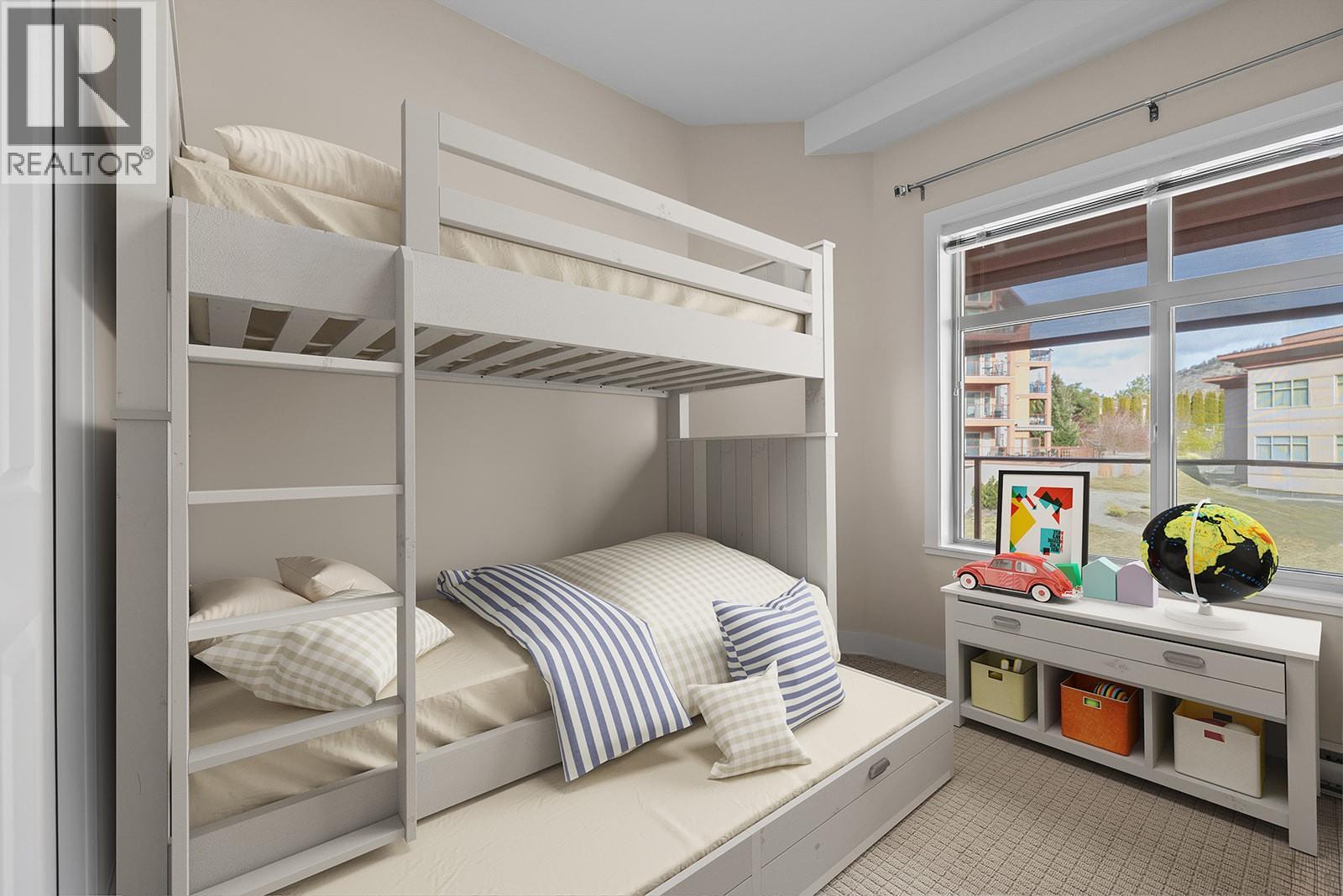 Welcome to Copper Sky, a resort-like community, with world class amenities where short term rentals are allowed! This bright corner unit features extra windows, two patio doors showcasing the lake and mountain vista from the deck and living room. The open concept layout is anchored by a beautiful kitchen with granite countertops, stainless steel appliances, brand new dishwasher, newer Maytag microwave, window over the sink, abundant cabinetry, wood inlay soft close drawers and two lazy Susans for exceptional storage. The spacious primary suite offers a walk in closet and a well-appointed ensuite with separate shower and tub custom tile & lighting. Enjoy indoor / outdoor living on the covered deck with remote controlled sun screen and natural Gas hookup for BBQ (gas included in strata fees!) Heating and cooling are second-to-none with quiet, efficient Mitsubishi mini-split heat pumps, and baseboard heaters as a backup for extreme weather. In-suite washer and dryer, 1 secure parking stall and storage locker add to the convenience. The Amenities Centre is what makes Copper Sky special creating that resort feel - large heated outdoor pool, year-round hot tub, kids wading pool, sauna, steam room, fitness centre, putting green, games room including billiards AND tennis, basketball and pickleball courts! Minutes to golf, wineries and amenities, making it a highly sought-after Vacation Destination. Live full-time, seasonally or invest at Copper Sky and enjoy NO GST, Spec Tax or PTT! (id:4069)